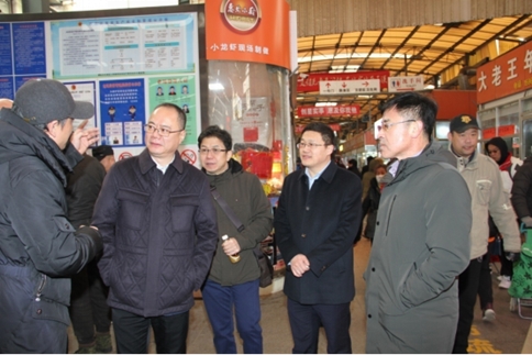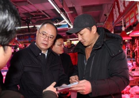 张杰局长首先来到位于四川路31号市南区鑫大众团岛农贸市场进行调研,听取市场负责人对市场的经营秩序和经营状况的介绍,与市场经营业户进行交流,详细了解他们的困难和需求,特别是在售生肉的检验检疫证明以及目前猪肉的价格和供应等。从农贸市场调研结束后,张杰局长、高健区长等又来到八大峡市场监管所,视察了所容所貌,了解基层所工作人员和日常监管情况,并为在一线工作的同志带去元旦春节的亲切问候。