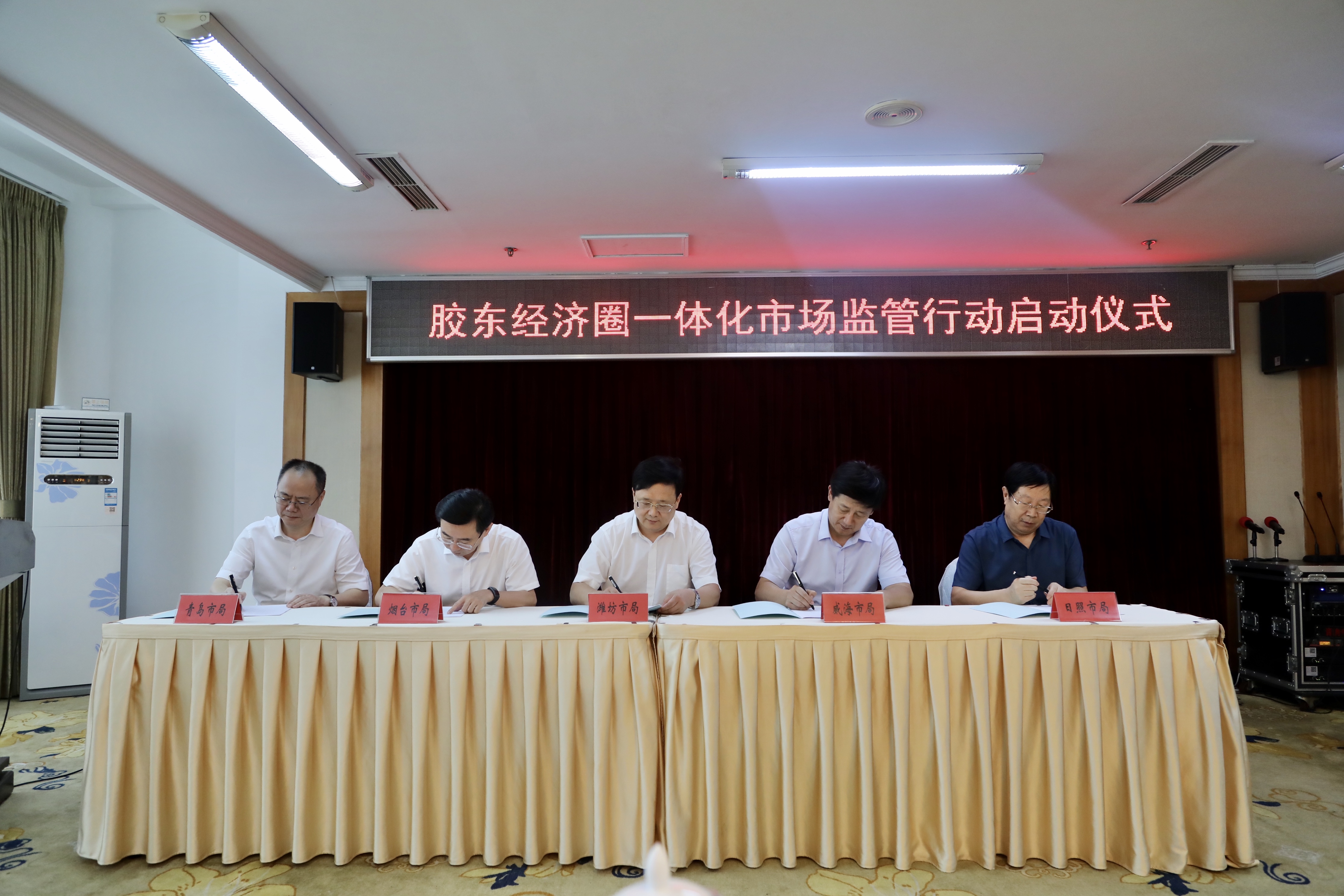 市局党组书记、局长张杰代表五市发布《胶东经济圈一体化市场监管行动方案》。胶东经济圈一体化市场监管行动以“三联三共”为目标,即:营商环境联建、重点领域联管、监管执法联动;资源共享、协作共进、发展共促,充分激发胶东经济圈市场监管工作的整体活力,进一步提升市场监管效能,共同打造全国领先的“胶东经济圈”区域工作品牌。