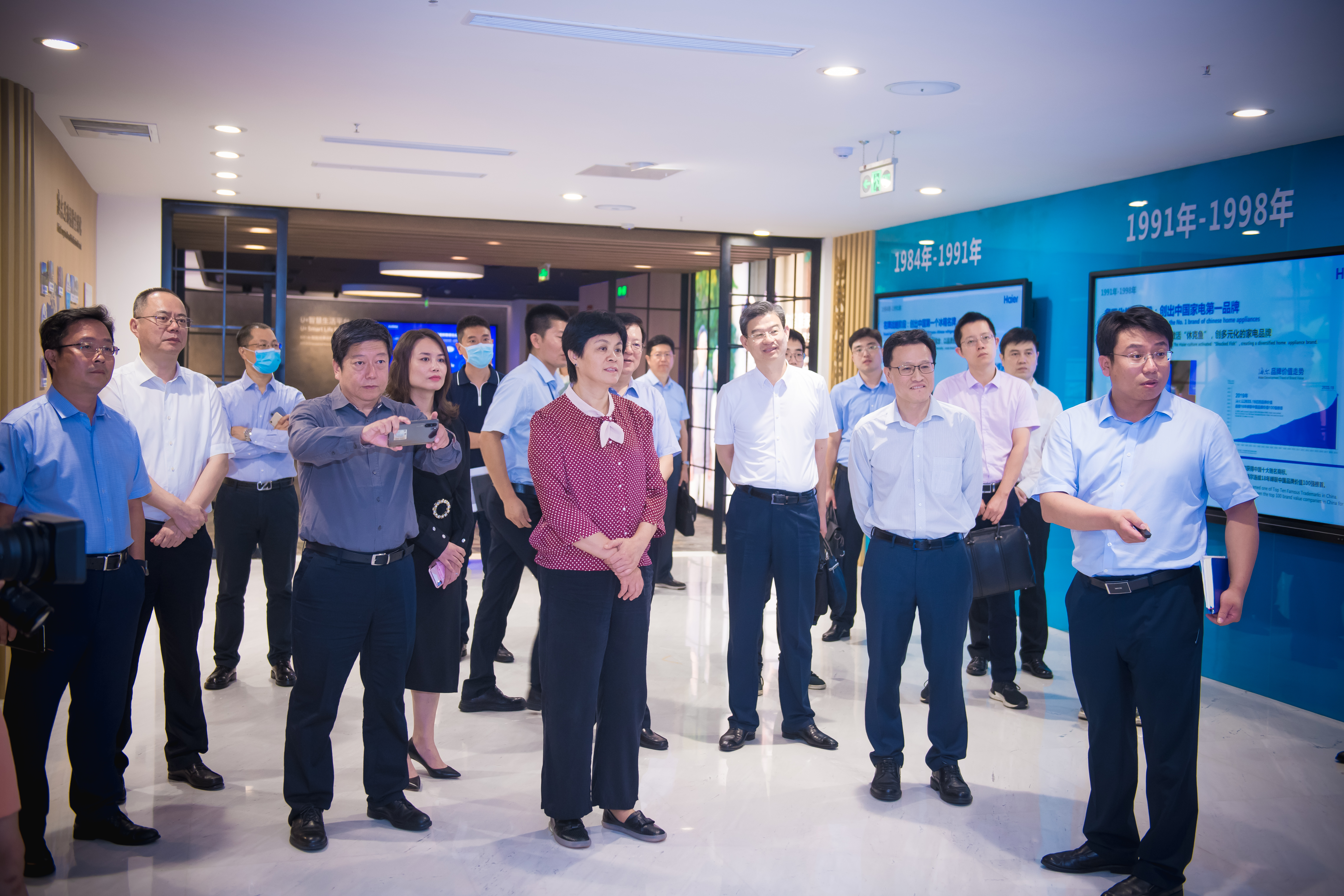 在海尔集团,甘霖一行参观了集团展厅,听取海尔集团董事局主席、首席执行官张瑞敏关于国家质量基础设施物联网平台建设情况的介绍,并就物联网建设标准、“人单合一”管理模式等方面内容进行了深入交流。甘霖对海尔集团打造国家质量基础设施物联网平台,把分散的NQI资源聚合起来,提供一站式服务的做法表示充分肯定。
